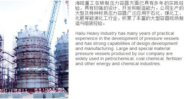 蘇州海陸重工股份有限公司位于江蘇省張家港市開發(fā)區(qū),是國內(nèi)一流的節(jié)能環(huán)保設(shè)備的專業(yè)設(shè)計(jì)制造企業(yè),目前并已初步形成鍋爐產(chǎn)品、大型壓力容器、核電設(shè)備、低溫產(chǎn)品、環(huán)保工程共同發(fā)展的業(yè)務(wù)格局。公司創(chuàng)建于1956年,注冊資本51640萬元,占地面積近50萬平米。公司下設(shè)八個(gè)控股子公司,一個(gè)余熱鍋爐研究所,在瑞士、北京、武漢、南京、上海、杭州、廣州等地設(shè)立分支機(jī)構(gòu),擁有雄厚的研發(fā)實(shí)力。公司秉承“科技領(lǐng)航、業(yè)界先鋒”的發(fā)展理念,注重研究廢熱、余熱利用和環(huán)境保護(hù)相結(jié)合的新技術(shù)研發(fā),自主設(shè)計(jì)能力居同行前列;公司承擔(dān)過國家863計(jì)劃,江蘇省科技成果轉(zhuǎn)化專項(xiàng)資金,榮獲國家科技進(jìn)步二等獎(jiǎng),產(chǎn)品擁有核心自主知識產(chǎn)權(quán)并取得專利50多項(xiàng);公司推行國際先進(jìn)的管理體系標(biāo)準(zhǔn)和認(rèn)證,擁有 A級鍋爐制造許可證,A1、A2、A3級壓力容器設(shè)計(jì)和制造許可證,取得了民用核承壓設(shè)備制造資格許可證、美國機(jī)械工程師學(xué)會(ASME)“S”、“U”鋼印,通過了ISO9001質(zhì)量體系認(rèn)證、健康體系認(rèn)證和14000環(huán)境體系認(rèn)證;公司設(shè)備先進(jìn),裝備精良,專業(yè)嚴(yán)謹(jǐn)?shù)闹圃炖砟畲蛟斐銎焚|(zhì)非凡、質(zhì)量一流的“海陸”品牌聲譽(yù)。
